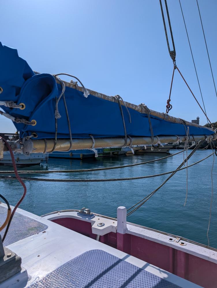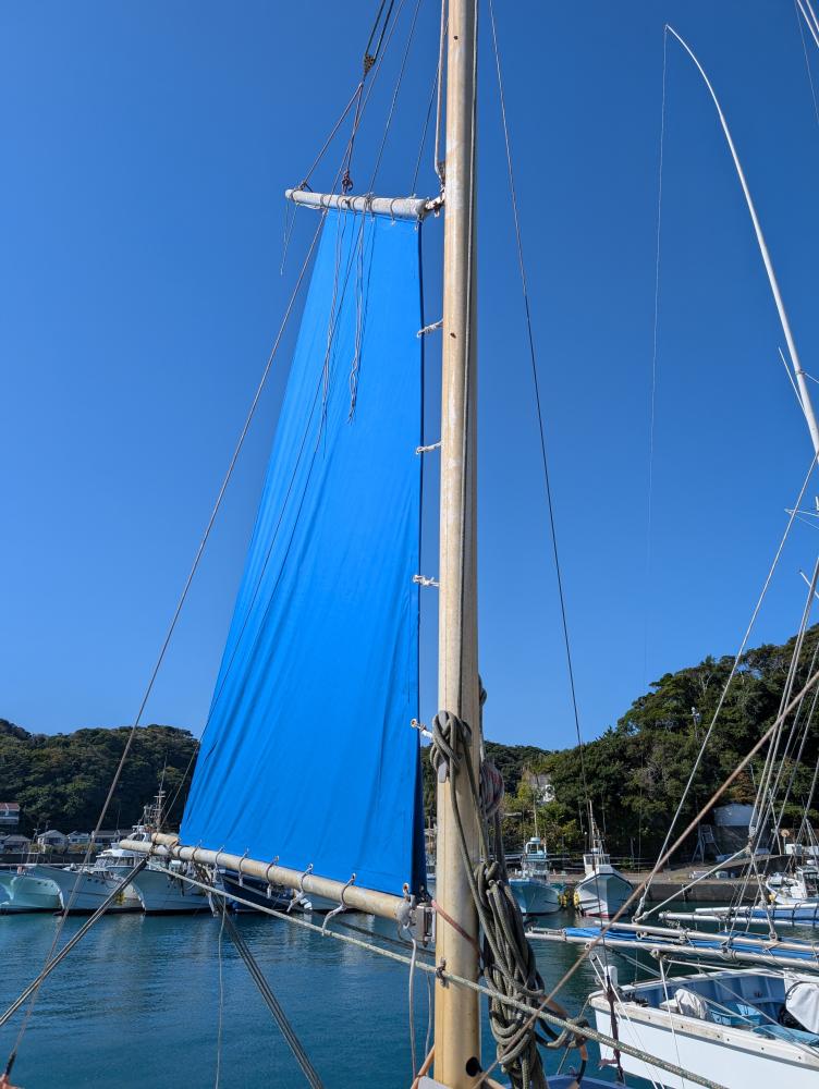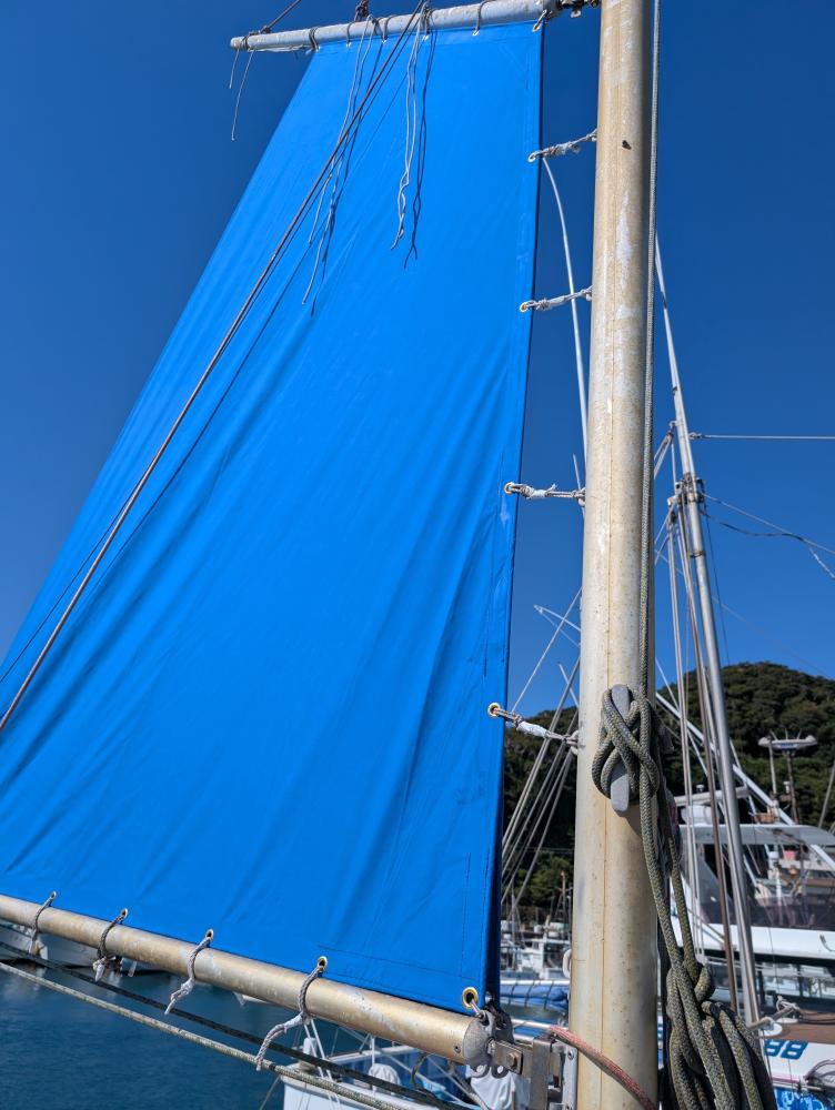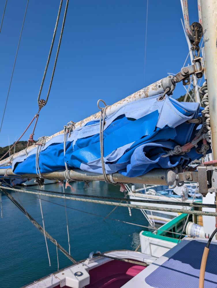 今日はボロボロになったスパンカー取り替えました!